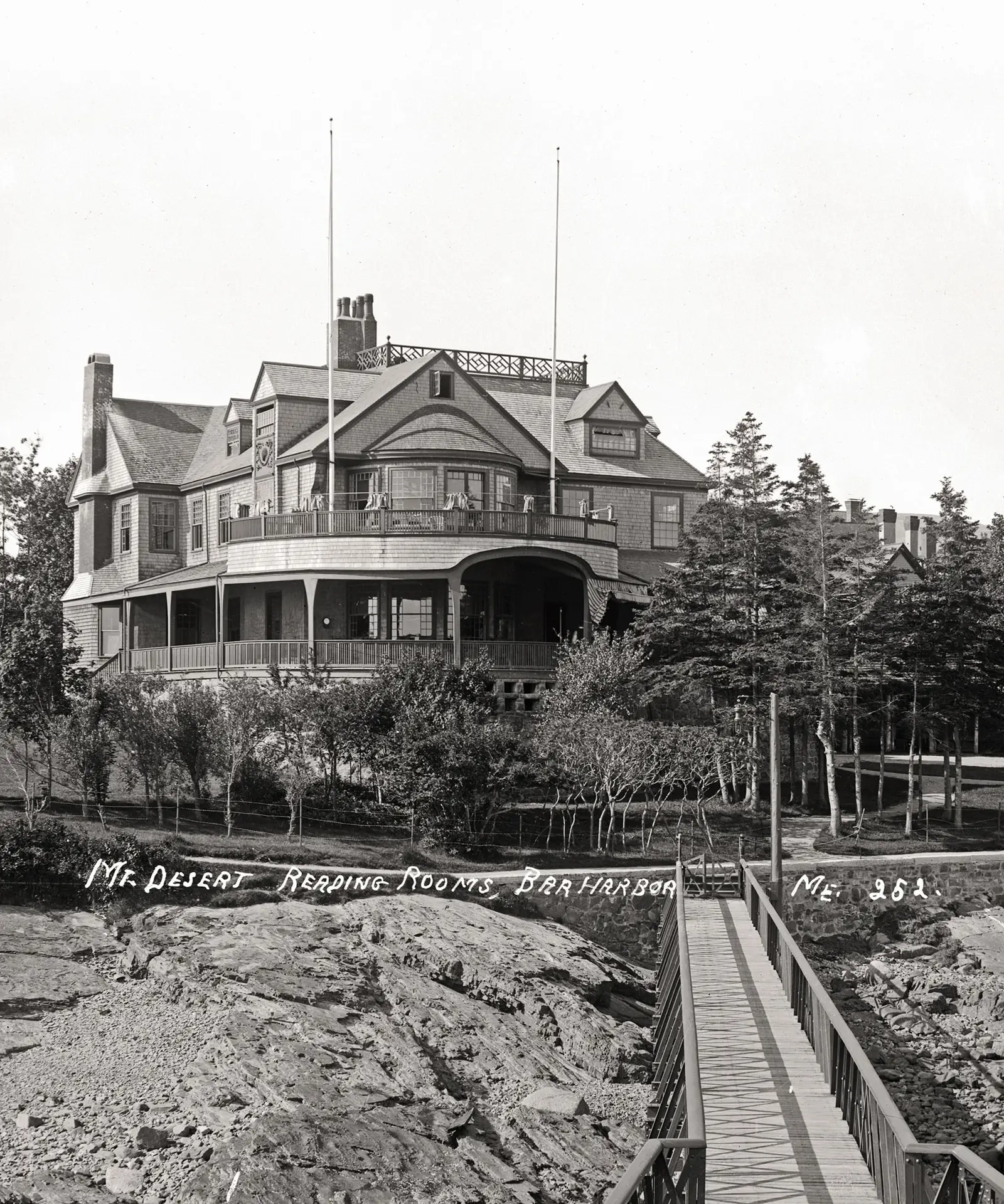 The members of the Mount Desert Reading Room moved into their new building in 1887. The handsome new cedar shingled structure, designed by architect William Ralph Emerson, became the center of social activities during the summers before World War I.